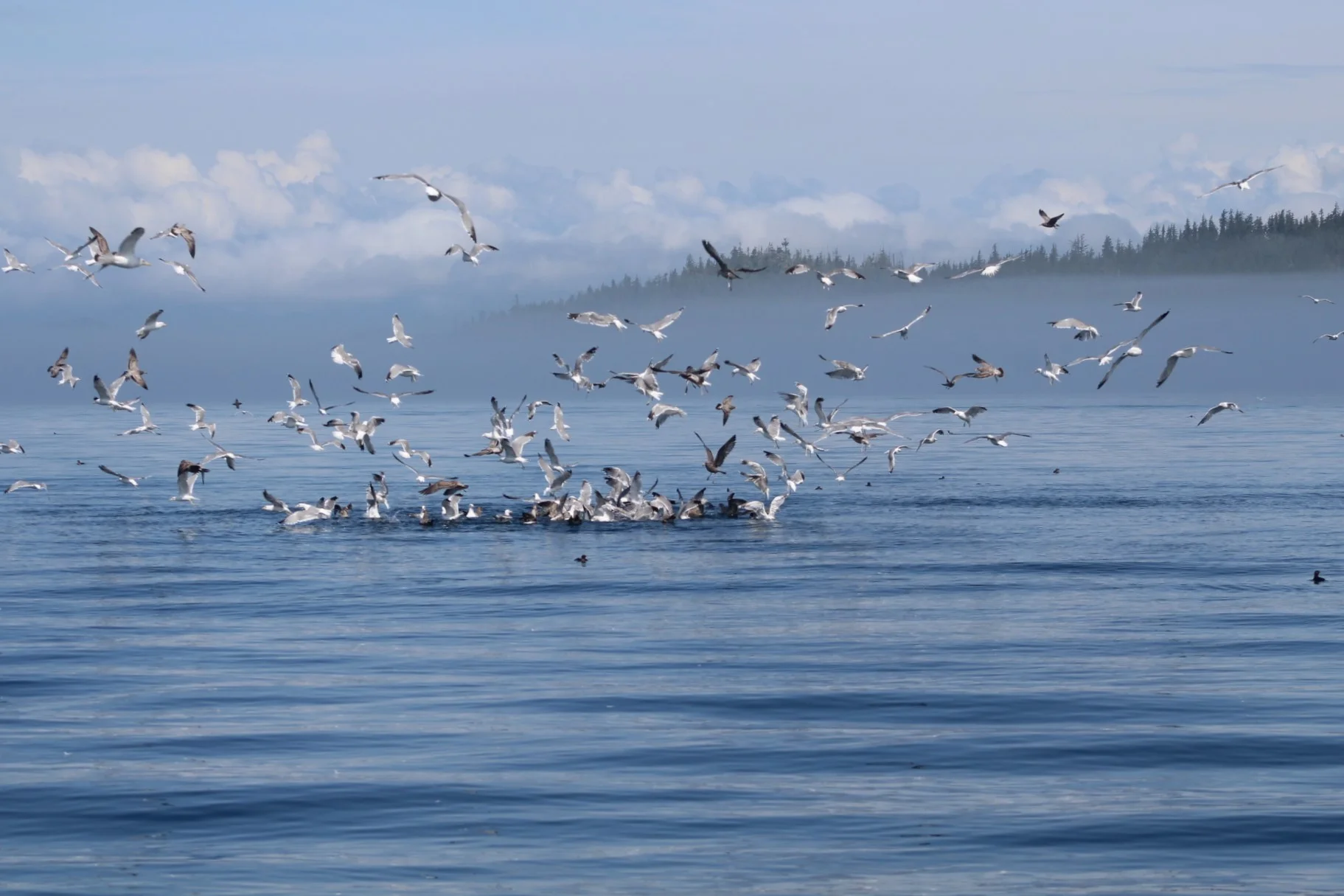 This morning we were greeted by calm waters and our August fog. (There is a reason that locals call August “Fog-ust”!) We didn’t let the fog discourage us, but enjoyed the mysterious feeling that it gave to our trip, and by the middle of the afternoon, the sun was out in full force.