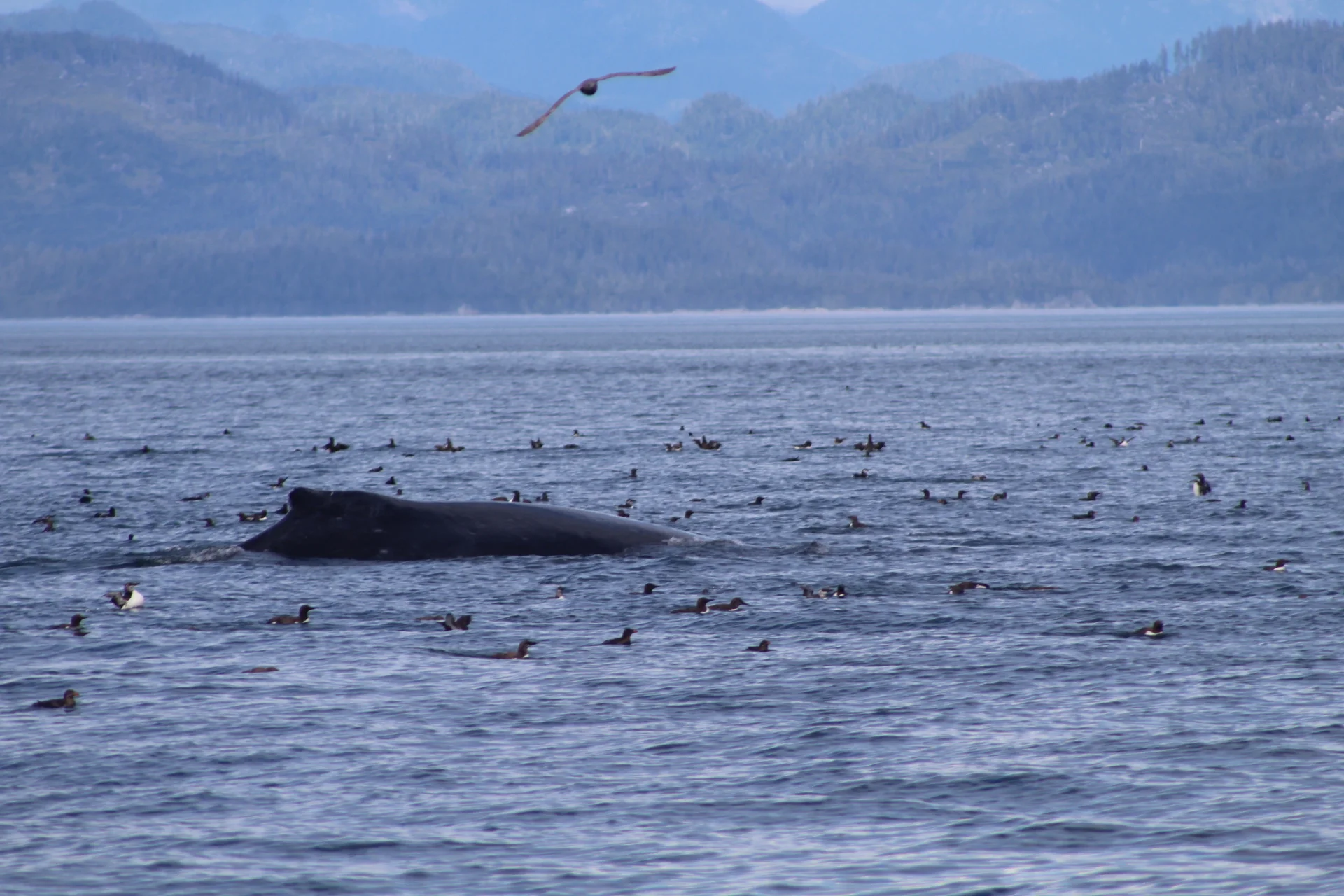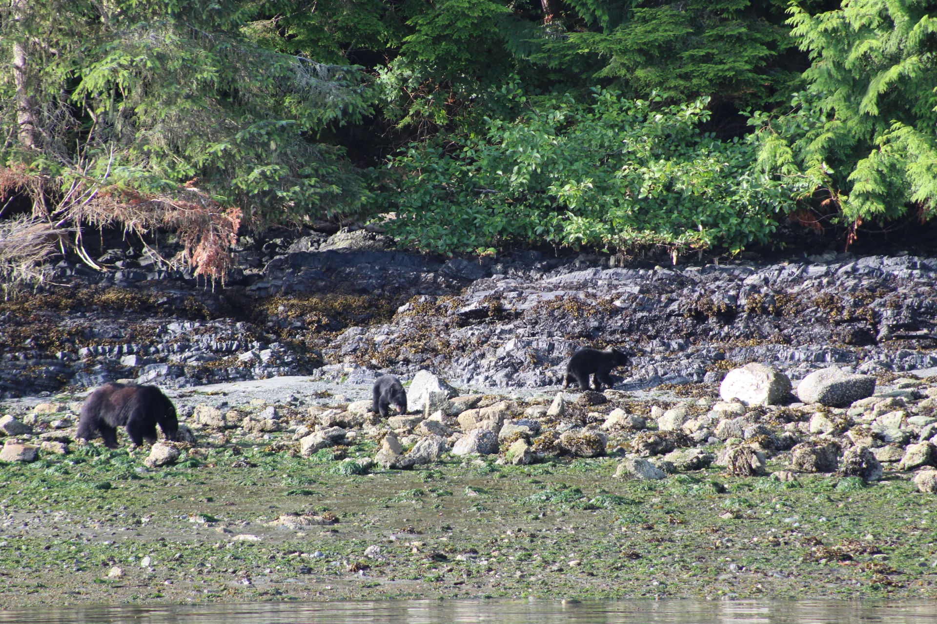 Today aboard the MV Seasmoke guests had a real treat when we spotted a black bear and her two cubs on the beach! We watched as they lumbered along the coastline before disappearing out of sight. Both tours had sightings of humpack as they foraged for food. Stellar sea lions also made an appearance in among the humpbacks.