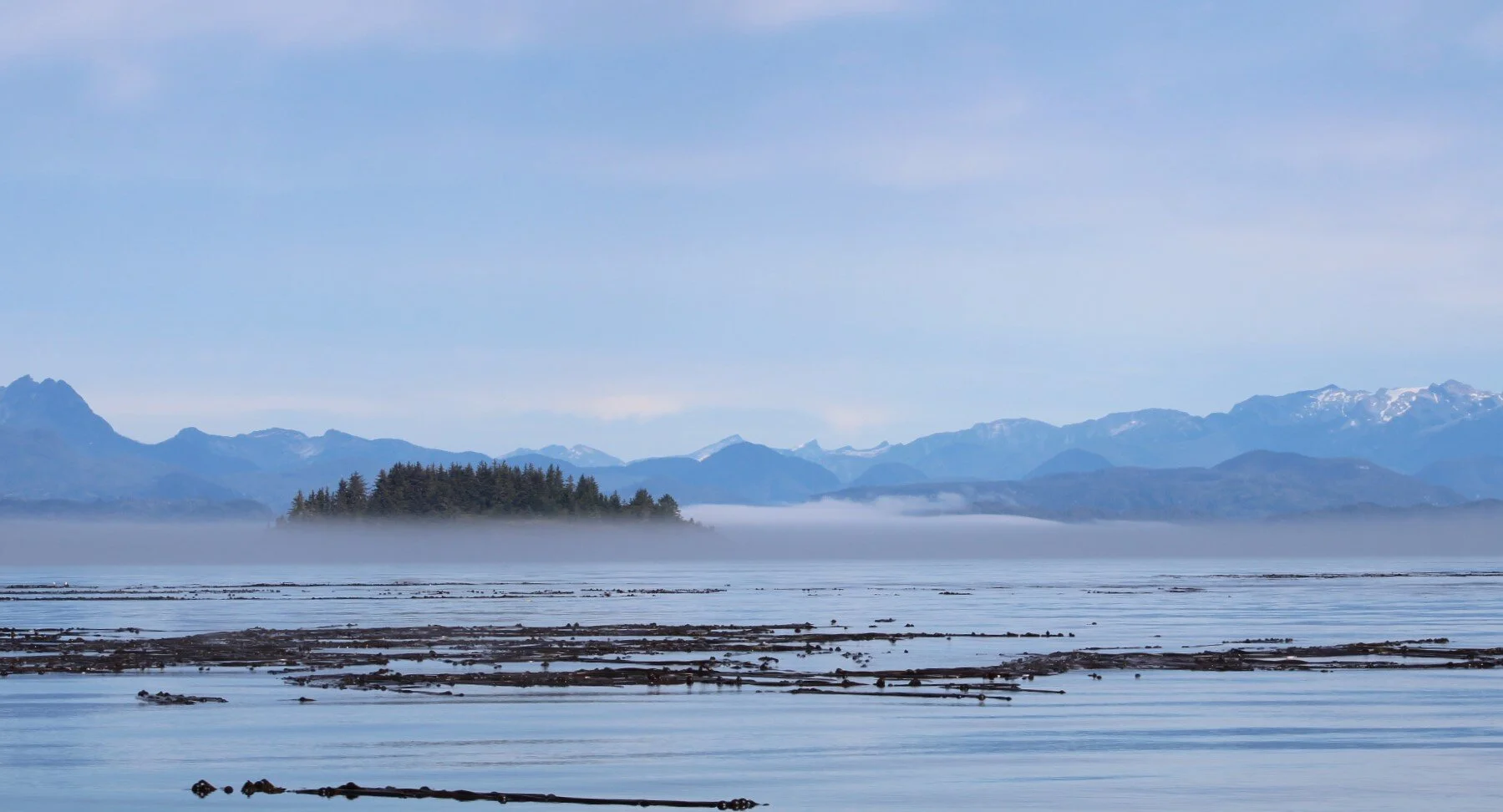 By mid afternoon a completely clear blue sky was above us and the sea was like a mirror, glassy calm and smooth like silk. It was a peaceful day as we maneuvered through narrow channels, taking in the magnificent scenery of forested islands and the final wisps of fog dancing among the trees.